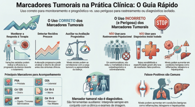 O uso adequado dos marcadores tumorais ocorre em situações clínicas bem definidas, nas quais eles funcionam como ferramentas auxiliares, e não como exames decisórios isolados.
